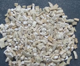 銀白色蛭石具有隔熱、耐凍、抗菌、防火、吸水、吸聲等優(yōu)異性能,在800~1000℃下焙燒0.5~1.0分鐘,體積可迅速增大8~15倍,最高達30倍。膨脹后的比重50-200kg/m3,顏色變?yōu)殂y白色,生成疏松的膨脹蛭石。