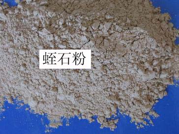 蛭石粉由生蛭石原礦經(jīng)高溫焙燒,篩選,研磨加工成粉末狀。主要刑號有20-40目、40-60目、60-80目、200目、325目。應(yīng)用于:房屋絕緣器材、家用冷藏器、汽車減音器、隔音灰泥、保險箱和地窖襯里管道、鍋爐的護熱衣、煉鐵廠的長柄勺、耐火磚絕緣水泥、汽車絕緣器材、飛機絕緣器材、冷藏庫絕緣器材、客車絕緣器材、墻板水冷卻塔、鋼材退火、滅火器、過濾器、冷藏庫、油地氈、屋頂板、檐板、介電閘板、糊墻紙印刷、戶外廣告、油漆,增加油漆的粘度,照相軟木板用的防火卡片紙、金黃色和古銅色油墨、油漆的外補充劑等。